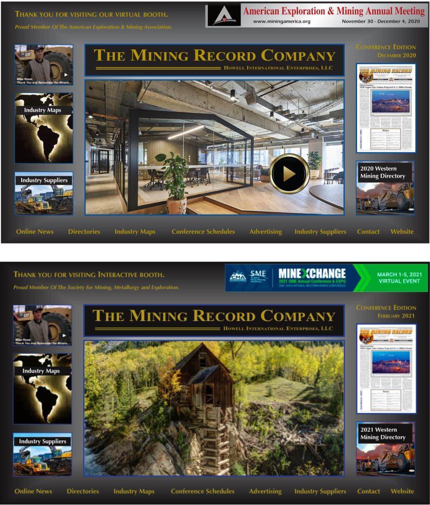 Below: Images of The Mining Record Virtual Booth – Video and/or Interactive Platforms